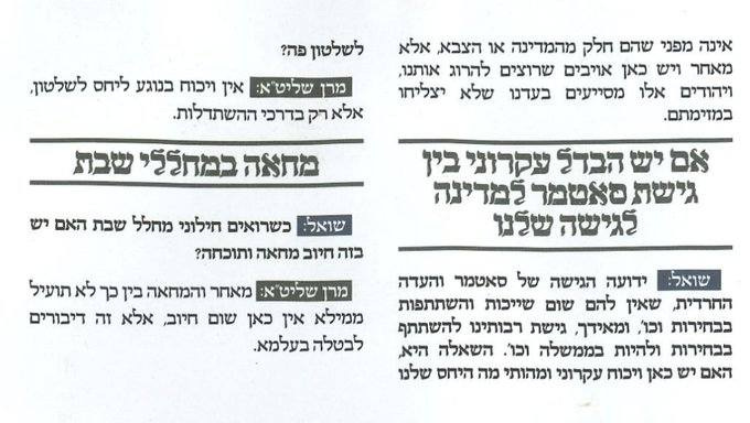 “There isn’t any difference between our approach towards the Jewish State and Satmar—it’s only in hishtadlus.”